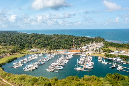This pleasant full-service marina is located just behind the Panama Canal Breakwater only two miles from the entrance to the Panama Canal on the Atlantic side. Marina has 200 berths and a 200 ft dock for mega-yachts and is located in a quiet area next to the San Lorenzo National Park, 50 minutes away from Panama City. The marina handles vessels from sailboats, catamarans, trawlers, yachts up to megayachts. Draft 20ft. Boatyard and services for yachts at anchor.