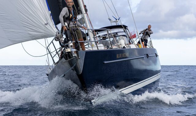 Everyone’s Atlantic experience is unique. The Kaprys Award for overcoming adversity was awarded to Tradewind 35 Cara of the South (IRL). Sailing double-handed, skipper Gary O’Grady and crew David Cant suffered multiple system failures, but their ingenuity and dogged determination kept them on course, crossing the line after 24 days at sea. The sextant workshop in Las Palmas with astro-nav guru Stokey Woodall giving Gary the confidence to navigate safely to Saint Lucia mainly by sextant. This is Gary’s second double-handed ARC, having crossed in 2022 in the 8.7m Westerly Konsort Katy (GBR).
