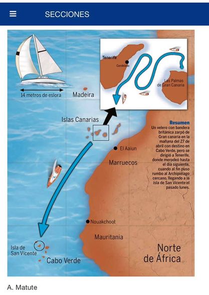 Police believe Gimeno and the girls may be on board a 14m yacht, under UK flag, which spent two weeks in Gran Canaria and then left for Cabo Verde using the North Route. It appears the boat was sailing around the Tenerife east coast the same evening the father and his children disappeared.