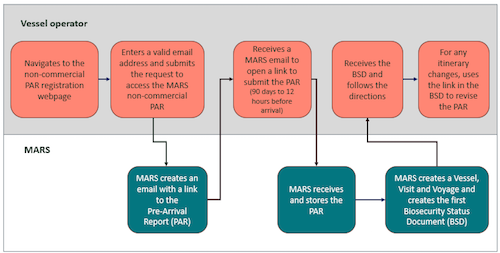 MARS will also notify biosecurity officers of the impending vessel arrival, enabling biosecurity officers to engage with the vessel operator to prepare for arrival and commence biosecurity risk assessment.