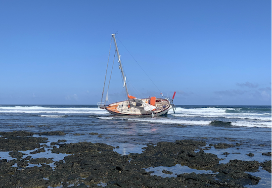 Guy deBoer’s yacht “Spirit” aground in the Canary Islands (C) GGR website.