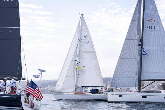 There was a Finnish tussle at the committee boat end of the line between ARC regulars Another Brick (FIN), the Beneteau First 44.7 owned by Markus Renlund, and Sebastian Gylling’s Swan 51 Eira (FIN) with Nigel Lewis’ Jeanneau Yacht 55 Musketeer of Cowes (GBR) in close pursuit. After the ARC, Musketeer will be one of seven ARC yachts to be joining the World ARC circumnavigation starting in January.
