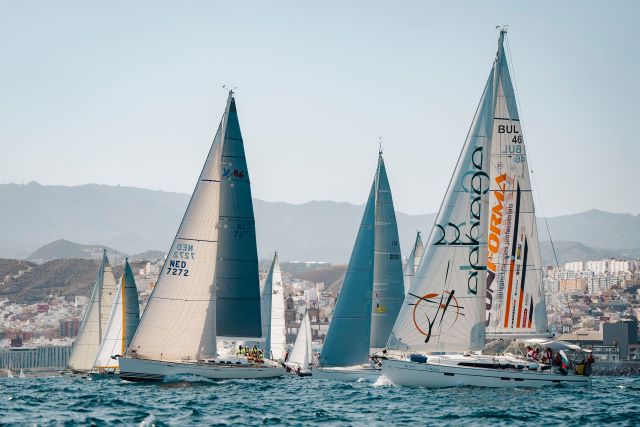 The blue skies and warm winds that delighted the sailors during their stay in Las Palmas created ideal conditions for the cruiser rally start. Ten knots from the southeast with a slow swell delivered a gentle beat with all boats crossing the line on starboard.