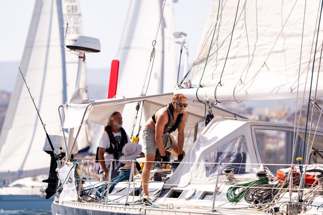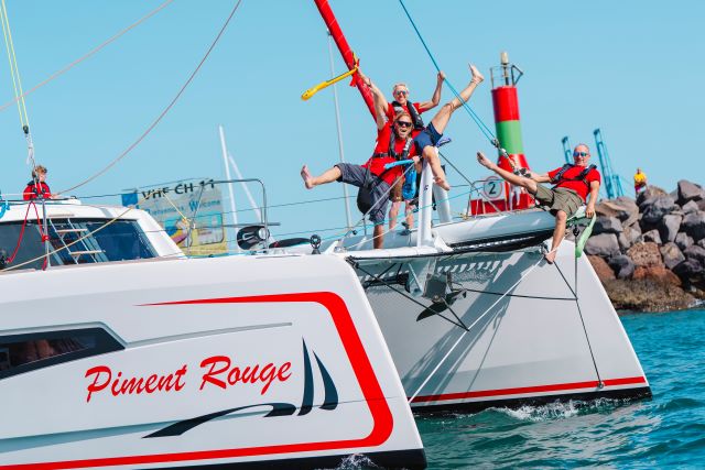 The 27 multihulls started at 12:45, with Erik Larsson’s Outremer 52 Appa (USA) first to cross the line, followed by Baptise Peix’s Outremer 49 Oxane (FRA), Simon Cook’s Outremer 55 Sizzle (GBR) then Excess 11 At C (NLD). These boats are all crewed by friends and family, including young children. Sizzle (GBR) has the rally’s youngest crew, 8-month-old Charlotte, and At C (NLD) is crewed by the Coumans family – Mum, Dad, Grandma, Grandpa and three children under eight.
