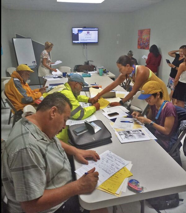 An Operation Centre was set up in the Power Boat conference room. Instead of everyone trooping down to customs and creating a mighty people jam, Jesse set up an Operation Centre, where a combined effort with Immigration, Customs, Port Health and the Government Vets to take care of pets, all came together to work together to have all the necessary papers filled out in advance, and all the documents photocopied. This saved everyone the hassle of filling out all the necessary forms as we recruited volunteers from the local business community and cruisers to assist with filling out the arrival forms.  Fees were low to nothing. Customs kindly waive all their overtime fees.