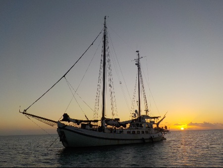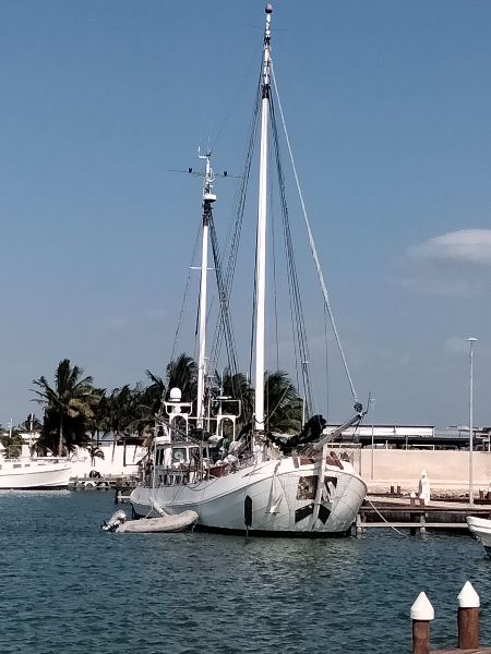 It is a 97 ft gaff rigged steel ketch, with mizzen, main and jib, along with engines/generators and almost 1000 gallons of fuel storage/water storage for 500 gallons. She has already traveled to and from the Caribbean several times with a destination of Haiti.  See some of her adventures at International Rescue Group.