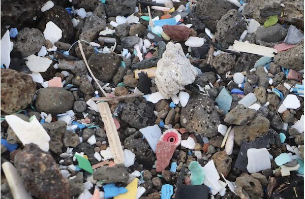 As the waves pull back, however, another reality emerges. The sand holds few corals or shells. Instead, the high-tide mark is a multinational carpet of plastics polished into an array of bleached Coca-Cola reds and Pepsi blues.