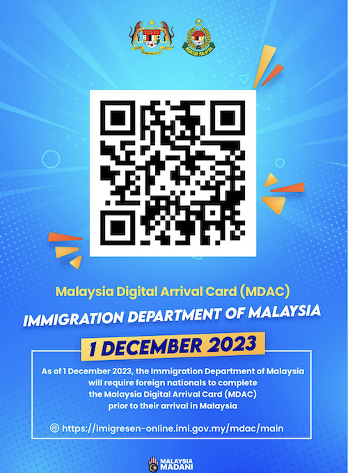 The Malaysian Government has announced that beginning 1 January 2024 all foreign citizens travelling to Malaysia are required to complete the Malaysia Digital Arrival Card (MDAC) three (3) days prior to arrival, except: