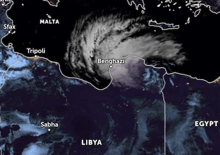 The storm, which developed in Greece and was named by the Hellenic National Meteorological Service, developed the characteristics of a Medicane – (a MEDIterranean hurriCANE) as it moved towards Libya.