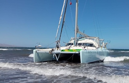 - The missing sailor’s catamaran was found aground on the beach near Loreto, Mexico (photo from latitude38.com)