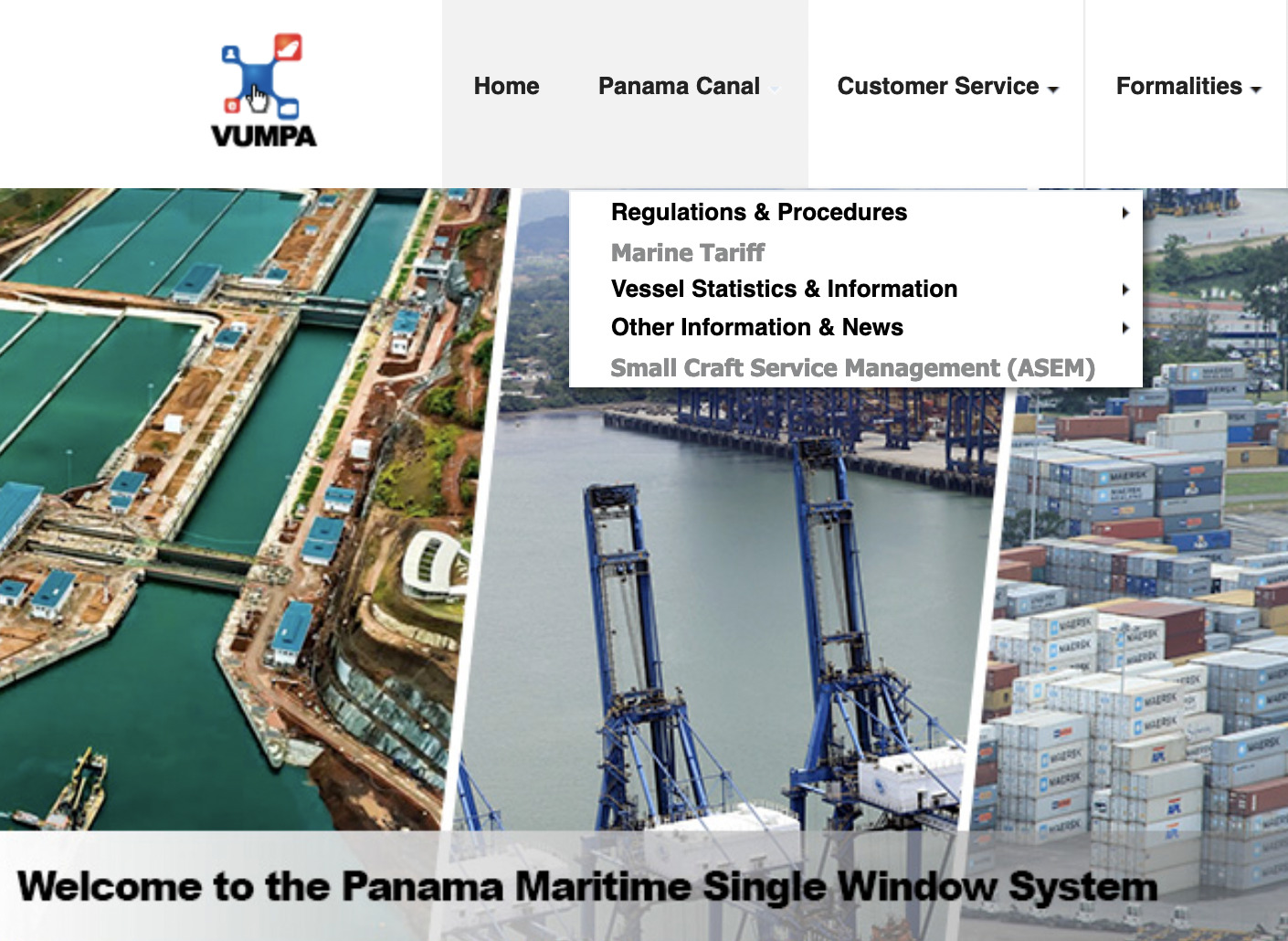 On the VUMPA page, click the Panama Canal tab open and you will see Small Craft Service Management (ASEM).