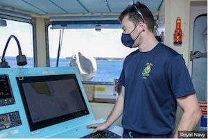 Spey is not a dedicated survey vessel, but navigator Lieutenant Michael Royle used radar imagery and GPS data to conduct a simple check of the island’s position, overlaying the details on the existing charts of the Pitcairn chain.