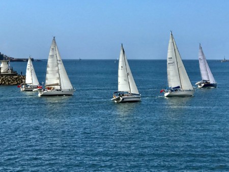 On Sunday morning, it was an early start as final pre-departure checks were completed by skippers before making their way to the starting area. The clouds parted and the winds built slightly just before the start at 09:00 creating quite a sight for those onshore watching from Plymouth Hoe in the Devon sunshine. Four yachts tussled for first over the line and Blue Pearl a First 40.7, came out on top followed by Swan 47 Bolero and Via Mio, a Sirius 36DS. The progress of the fleet can be followed by friends and family with each boat fitted with a YB Tracking unit, displaying their positions on the online Fleet Viewer or YB Races app.