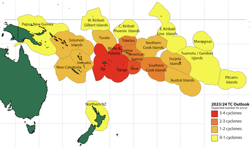 NIWA’s outlook says nine to 14 named tropical cyclones could occur in the Southwest Pacific from November 2023 to April 2024.