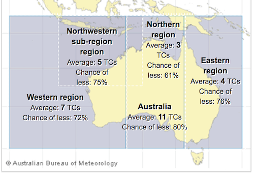 On average, 11 tropical cyclones form in a season in the Australia region, with four typically crossing the Australian coast, since reliable records began in 1969–70.