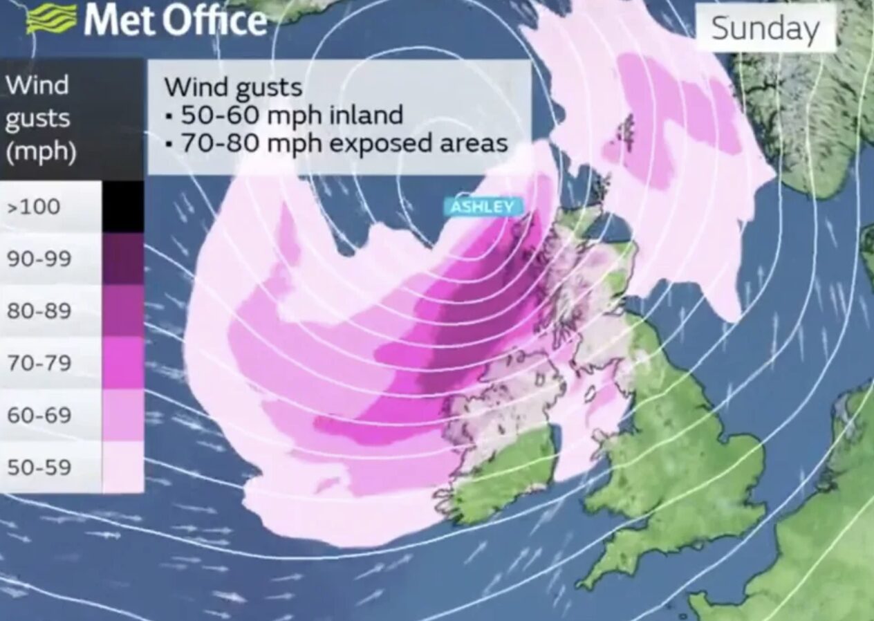 The meteorological services of Ireland and the UK named storm Ashley as a potentially severe windstorm that will blast toward Ireland and Scotland.