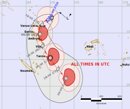 “The cyclone is expected to track very close or over Vanuatu as a Category 2 system around