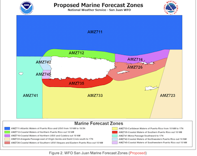 The NWS Weather Forecast Office in San Juan, Puerto Rico is changing the Marine Forecast and Warning Zones for the waters offshore Puerto Rico and the U.S. Virgin Islands.