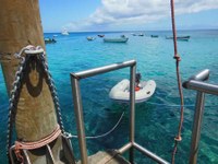 The anchorage is a little rolly, but you will likely see turtles around your boat along with schools of fish.