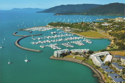 There are marinas at Hamilton Island and at the Coral Sea Marina Resort in Airlie Beach (see photo) which can take vessels up to 80m.