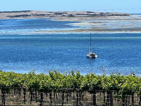 American River is sheltered, but not particularly interesting. Kingscote is a nice anchorage in front of the town, and there is also a nice anchorage at the bottom of the hill from the Bay of Shoals winery.