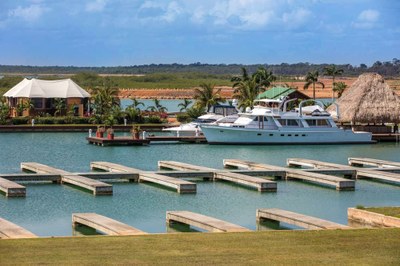 The marina is part of a 14,000 acre development that will see 4000 acres of housing plots with 10,000 acres of wild land, mangrove lagoons and pines. So far 30 houses have been built with another 50 under construction. A smart Beach club is open Wednesday to Sunday and is approachable from the lagoon and marina through 1 mile of dredged canals.