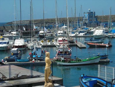 To approach the marina, sail quite close to the land until the green harbor light on the breakwater is seen. Do not go too far to port as there are rocks. Be aware that there is a ruin on land with a green door which looks like a green navigation mark!