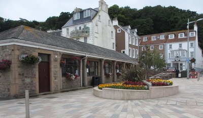 A sheltered drying harbor at the head of St Aubin's Bay, just west of St Helier. The small village here is a very attractive corner of the island.