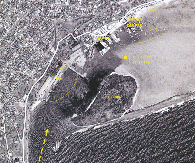The only designated anchorage in Boca Chica for visiting yachts is located behind the island of "La Piedra" opposite the private yacht club. As one enters the bay, past the mega-port the yacht club is the first facility on the port side. Opposite the yacht club is "La Piedra" where people do anchor and anchoring is permitted. It is not a large area and space is very limited, perhaps room for 3 regular sized boats. It's also not possible to anchor here long-term.