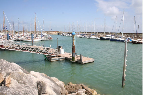 The arrivals pontoon in front of the Capitaine with the tide gauge in the foreground.