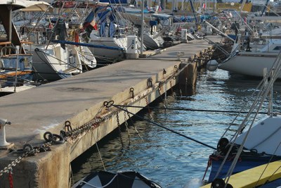 13 -19 Sept. Darse Vielle. Visitor’s berths are on a fixed jetty on the right side of the entrance. Water and electricity present, good WiFi but only available within a touching distance of the Marina Office. English is spoken.