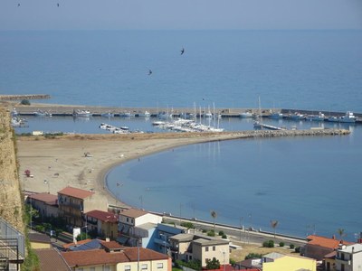 This marina is very well sheltered from SE and NW, with no swell in winds from either direction. It is shallow however in the approaches with silting, so take care with depths (last reported less than 2.4m at the entrance). Keep close to the Northern breakwater for deeper water. The visitors' pontoon is the one on the left in the picture (photo courtesy of SY Big Sky).