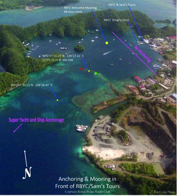 Visiting yachts are invited to come around to the Royal Belau Yacht Club anchorage AFTER they have completed Vessel Entry Clearance. The Club can assist with finding a suitable anchorage or available mooring.
