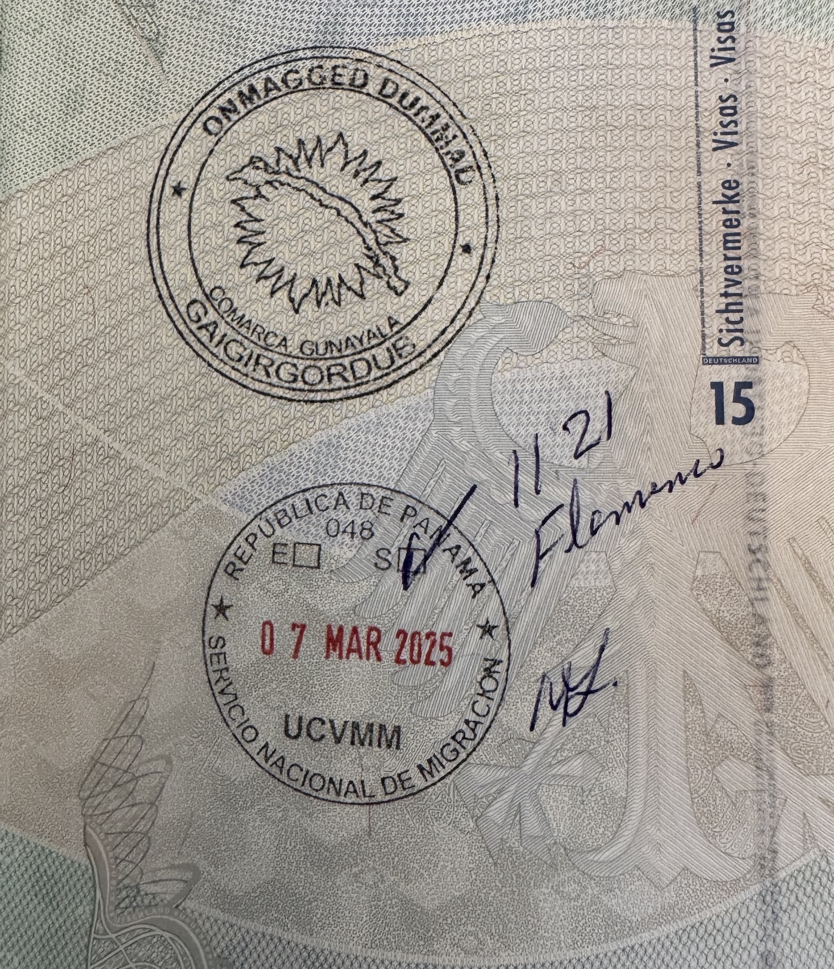 c) Immigration: They will stamp your passport into Panama. Check to make sure they have done the stamp correctly (i.e. dated, signed, your boat name, duration of entry and a tick in the tiny box). They gave me two receipts.