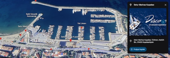 The chandlery which used to be in Setur Marina moved a couple of years ago to a side street across from the marina shopping and restaurant center. It’s convenient but a bit pricey. There’s another chandlery in the Sanayi Sitesi on the edge of town which is a good bit cheaper but obviously less convenient for anyone staying in the marina or adjacent to it.