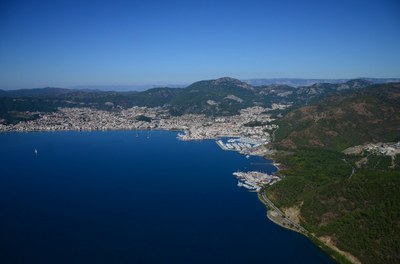 The large curved Marmaris Bay provides a large anchorage with a long sandy beach. With the prevailing wind being from the west, the NW side of the bay provides the most comfortable spot. It is good holding if you penetrate the weed and dig into the sand below.