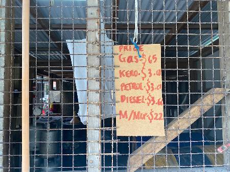 Signage for fuel stations may just be a torn piece of cardboard on a shed wall with prices handwritten on it. There will also be a lot of official “No smoking” signs. This is how you know fuel is sold there. There are no other signs. But ask people where to buy fuel and they’ll be able to point the way.