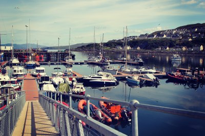 Approximately 6nm east of Mallaig harbour is the small village of Inverie, located near the entrance to Loch Nevis. The pub there (The Old Forge) has some moorings and dinghies can be left on the beach.