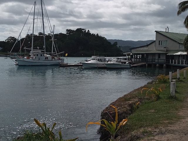 Having fixed the anchor winch issue we went back to Musket for another look. What had disappointed us on the first visit was that nothing had improved from 2015, our last visit. The dockside had been knocked about in a cyclone and was not yet repaired. The shower and toilet block, available to yacht crews, was in worse state than in 2003 on my first visit. The water in the showers still would not let soap lather. The selection of food in the cafe was less than in 2015. The quality of the food had dropped. The store was the same and possibly had more things to sell, but wine was not one of them. All the investment on Malolo-Lailai Island was going into Plantation Island resort. New chalets, new swimming pools, new bars and new cafes. Also a new liquor store selling $15 bottles of NZ wine for $90 Fijian. The shop keeper just shrugged and said that’s just the way it is.