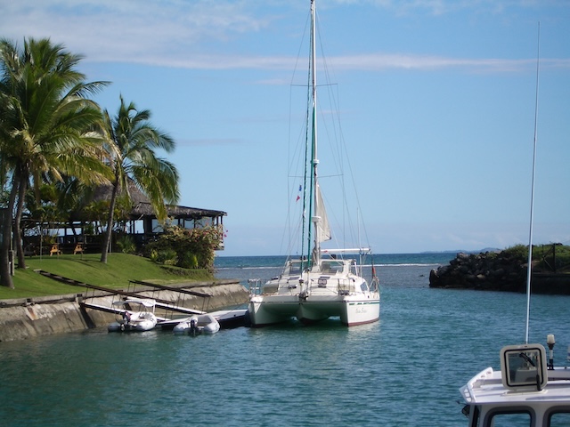 Next day we motored into Denarau harbour, were given the wrong instructions for reaching our designated berth, strayed about 1 metre to the side of the channel and beached ourselves on a sandbank. Two hours later once the tide lifted us we made it to our berth.
