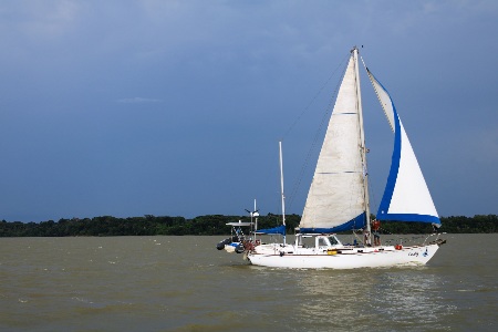 We departed Soure at 07.00am with 4kts of incoming tidal current in our favour. Our 50nm motor sail was uneventful until 10nm before Belem when we got 25kts of wind pushing us into Belem.  The anchorage had good holding with mud bottom (01 28s 48 28w).