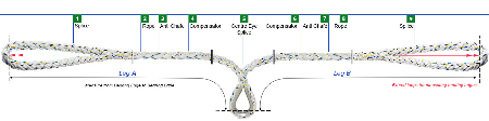 The bridle on the left-hand side (above) illustrates the lines emanating from the splice in a direction sympathetic to their original designed structure. The bridle on the right-hand side is pushing the limit, making the angle wider than ideal for the line and the splice.