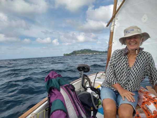 - Returning to Ya in the Red Frog Anchorage after a successful shopping trip to Bocas del Toro in our sailing dinghy.