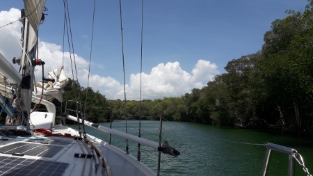 There’s a shallow spot that’s not on Navionics – (18 24.331 N, 69 5.1 W). A provisional buoy marks the top of the shoal. Make a wide turn. When you go upriver, there’s lots of small harbors and hurricane holes, where some owners seem to have forgotten their boats. A weird sight but the river is really beautiful, especially further upstream.