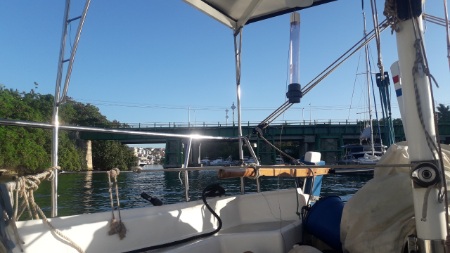 We arrived at La Romana at night. Navigation was easy. We anchored in front of the immigration/customs building, some 100 meters from the west bank, close to the dock (for your dinghy). The officials gave us directions we could not really understand, but if you anchor pretty close to the bridge it is OK. They asked for our Despacho right away and after a small discussion we agreed to come to their office in the morning.
