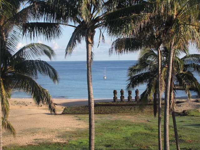 A direct route from Tahiti to Chile typically heads south until westerlies are picked up in higher latitudes. But Pitcairn can be reached from the Gambiers or, if one is fortunate (particularly in an El Niño year), from Tahiti. Rapa Nui can be reached from Pitcairn or the Galapagos, by-passing French Polynesia altogether. The passages to Rapa Nui are long and conditions at the island can be challenging. But standing in front of the great row of moai at Ahu Tongariki at the east end of the island or Hanga Anakena on the north coast and looking past the enigmatic statues to the empty ocean beyond, knowing that your own little boat has brought you to this remote and moving place, is one of cruising’s great moments.