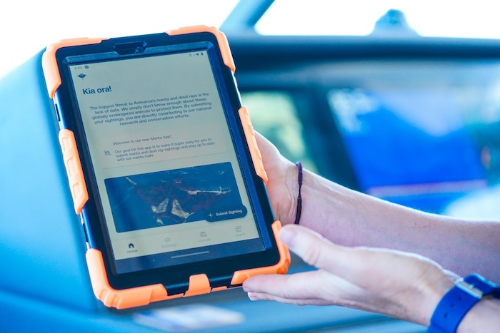 Researching a highly mobile marine species that doesn’t need to come to the surface can be tricky. The project’s research efforts are supplemented by a national manta network – aka hundreds of citizen scientists who submit sightings to the project. We developed a Manta Watch NZ app so people can record sightings, key facts, and videos and images.
