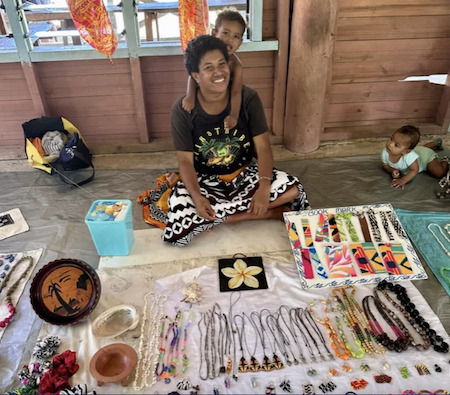 We anchored in bay next to the village. You don’t need to go to the village if you anchor here but we took the dinghy as we wanted to see the village. We were shown around by Marrian and she took us over to the chief where we did sevusevu* and she showed us around. She also gathered the local people to sell us trinkets, mats and jewellery.