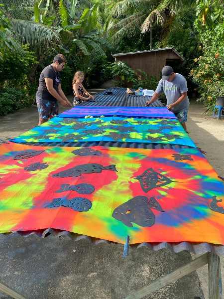 Near one of the two possible anchorages in the atoll, we see how pareos are made. Elias and Hannah can each design one according to their own imagination. They turned out really beautiful.