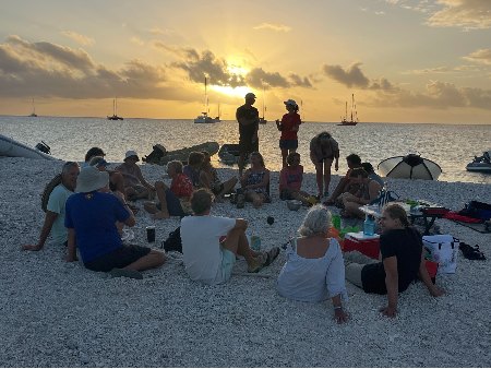 If you glance at a map, you will see these islands are all similar and mostly aligned with the SE trade winds, which makes for excellent travel in this direction. Our experience was fabulous; the beauty of the pink sand beaches, reefs, sunsets, and sealife here are remarkable.